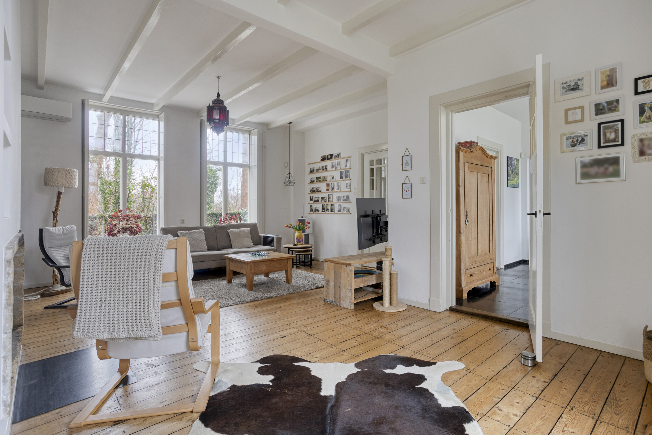 De woonkamer is een fijne plek om samen te zijn. Er is ruimte voor een grote zithoek waar je lekker kunt neerploffen na een drukke dag. De houthaard maakt het extra gezellig, vooral op koude avonden. De authentieke details en het plafond geven de ruimte sfeer, zonder dat het druk voelt. De airco zorgt ervoor dat je het hier snel aangenaam hebt, in elk seizoen. Via de openslaande deuren loop je door naar een extra kamer die je helemaal naar eigen wens kunt gebruiken.