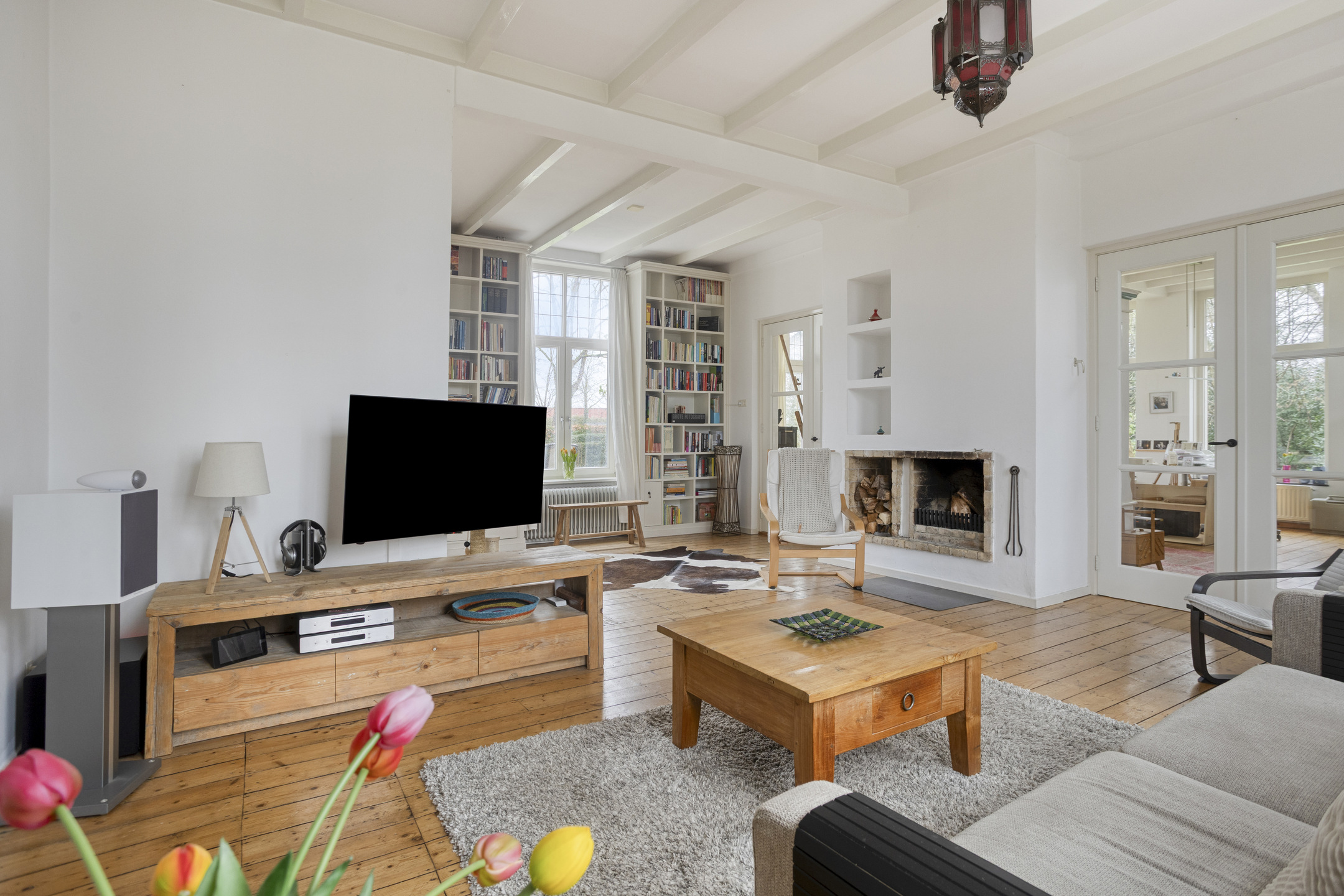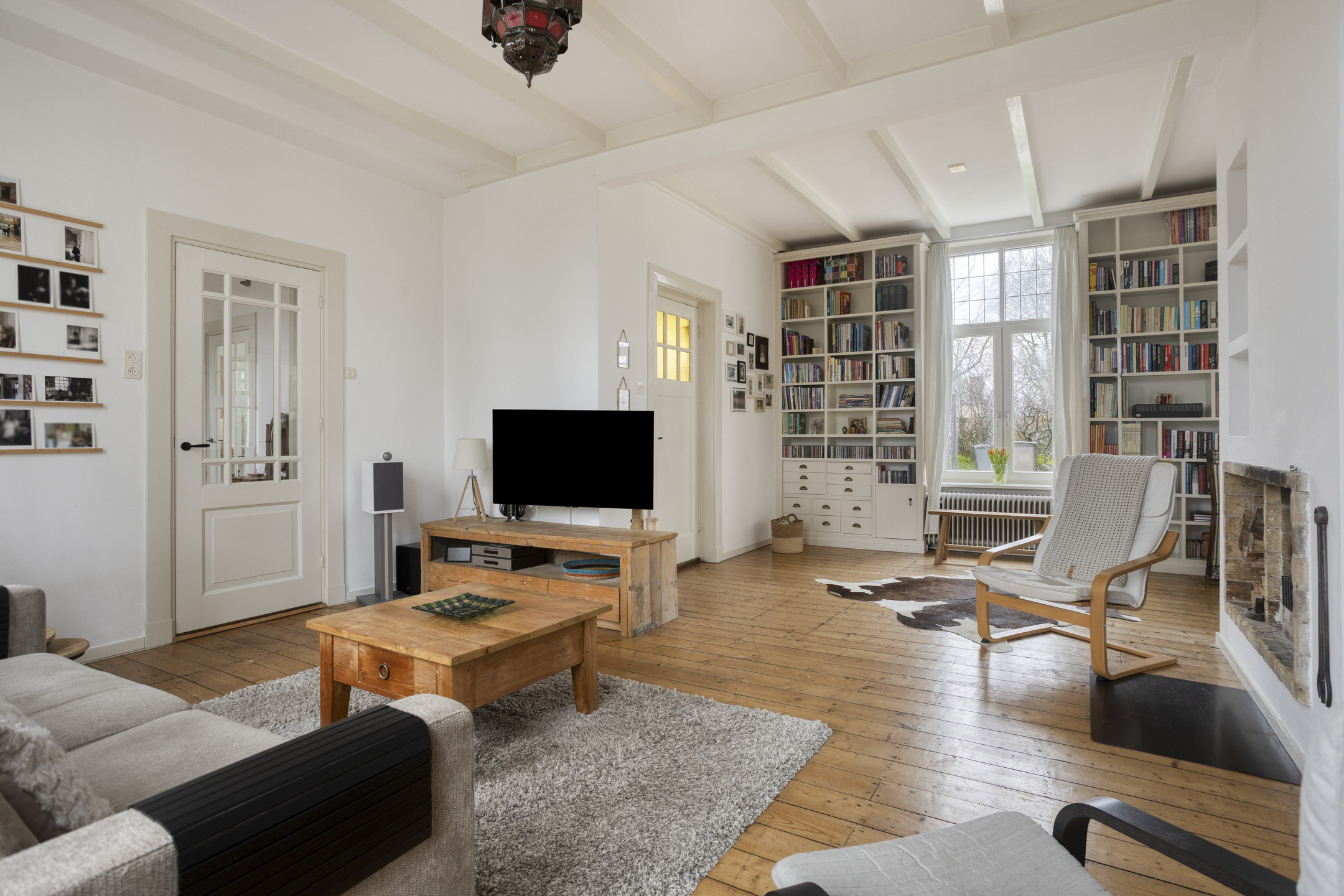 Sfeervolle woonkamer met houthaard